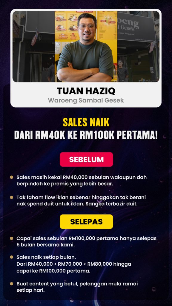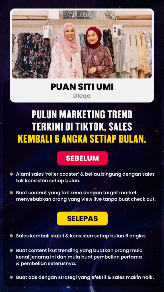Bukan sekadar formula jualan. Ini strategi yang terbukti berkesan, digunakan oleh usahawan F&B, fashion, jualan produk TikTok dan servis profesional untuk mencipta sales besar dengan ilmu fundamental marketing yang betul.