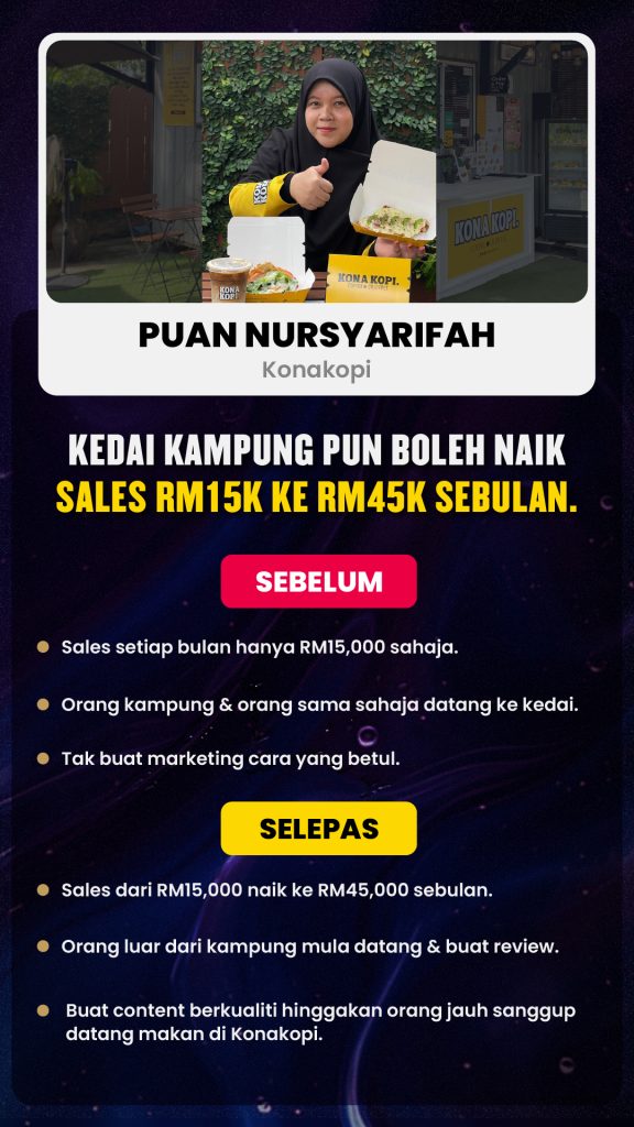 Dalam sesi ini, peserta akan belajar cara hasilkan content yang bukan sekadar dapat views tapi naikkan jualan.