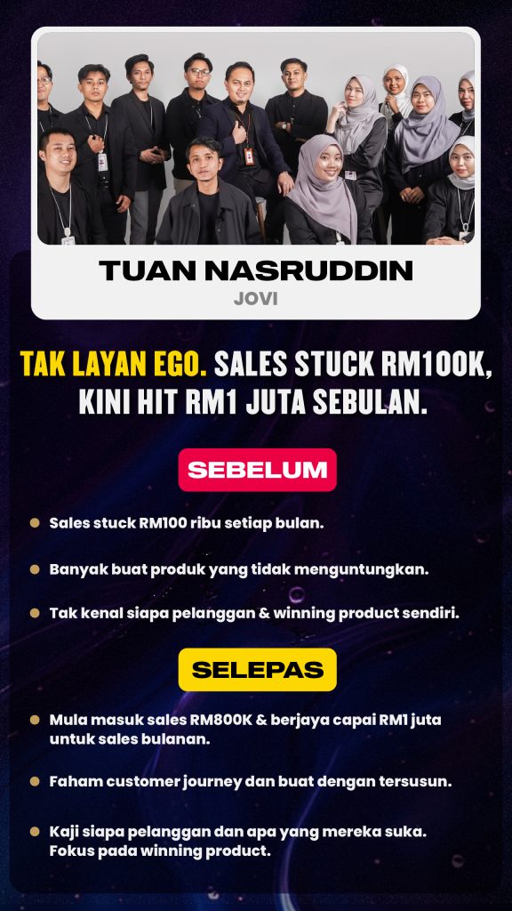 Sekarang giliran anda untuk buat keputusan. Berapa lama lagi nak biarkan bisnes stuck bawah RM300K, duit habis cover kos, team makin lemau dan kalah dalam persaingan?